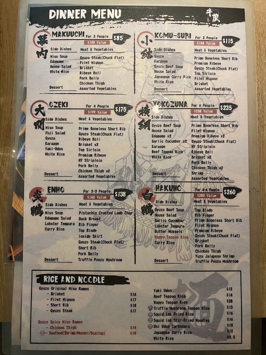 Welcome to Gyuzo Japanese BBQ - Wagyu / Sushi / Ramen - All You Can Eat, a culinary paradise located in Rockville, MD. This exceptional dining experience offers an extensive menu that showcases the best of Japanese cuisine, from premium wagyu and fresh sushi to comforting ramen dishes.